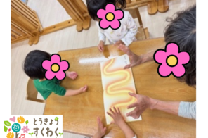 あそびを通して人との関わりを大切にし、おじいちゃん、おばあちゃんや地域の方々と関わり、季節のイベントを楽しみます。そして、子どもたちは兄弟姉妹のように関わりを深め、愛情と信頼感を育みます。ちゃのま縁日や小麦粉のりあそび、ジュース屋さんごっこ、コーナー保育、トンネルやマット、平均台を使った運動遊びなど、保育士が毎日工夫を凝らした“あそび”がちゃのま保育園にはあります。