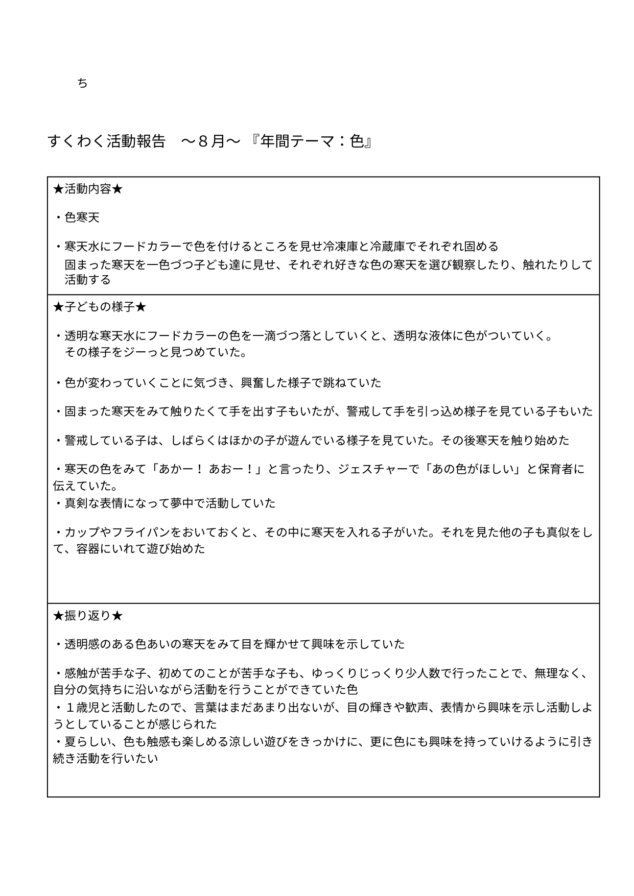 とうきょうすくわくプログラム活動報告 8月(横川)