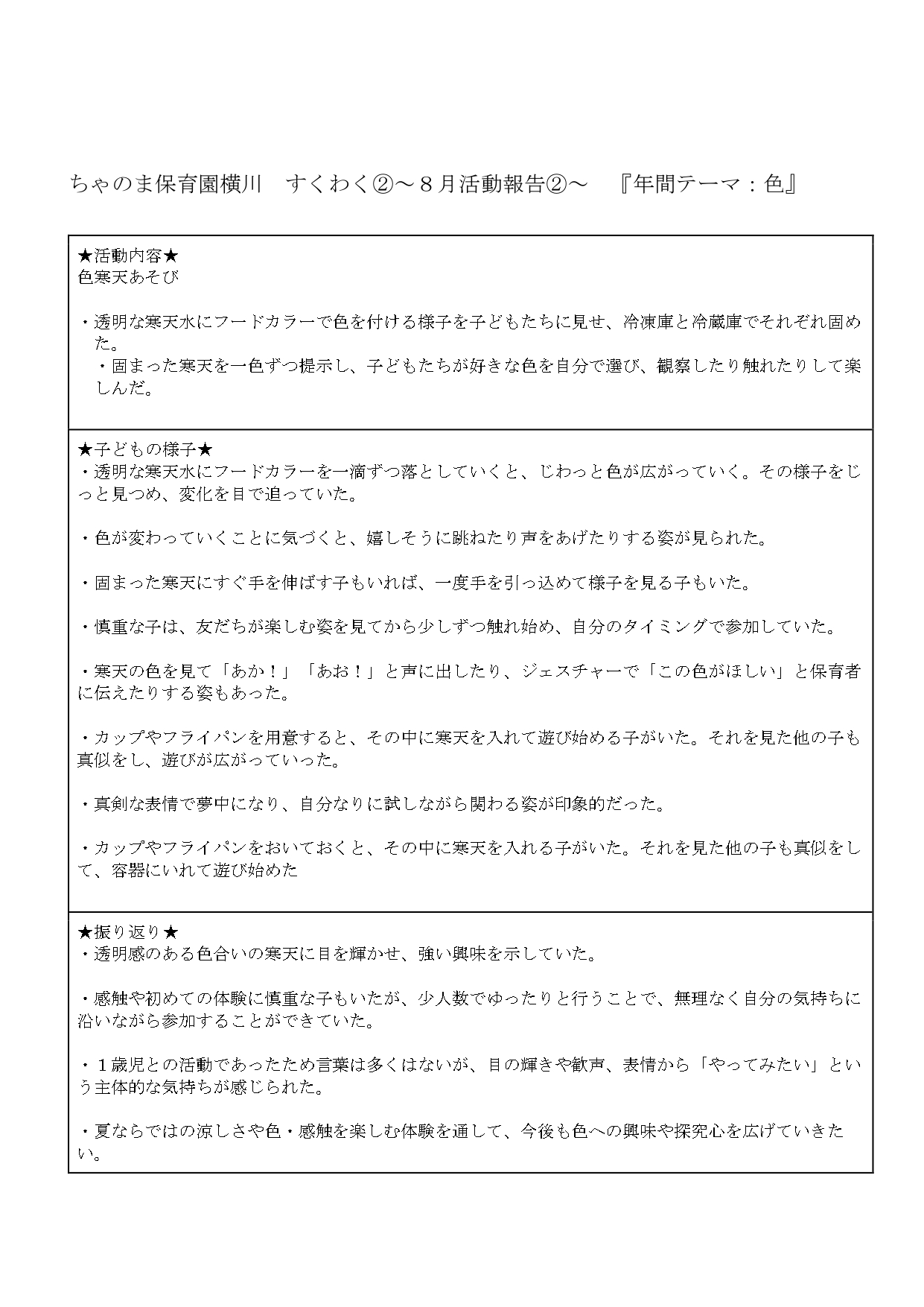 すくわく活動報告2・8月の活動報告② | 「ちゃのま保育園」墨田区のお母さんがつくる地域密着型保育園